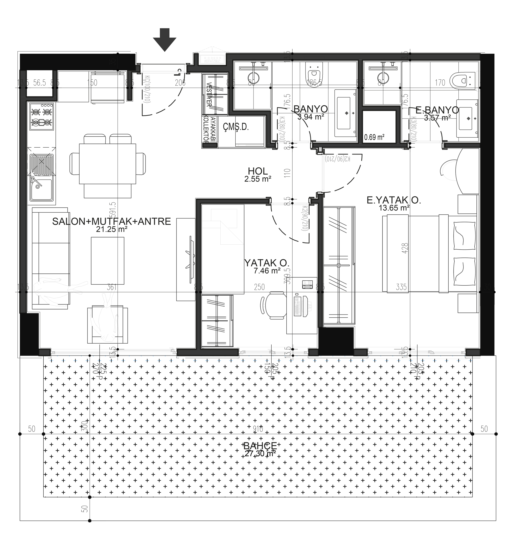 Проект предлагает квартиры различных размеров и типов, начиная от уютных квартир 1 + 1 и заканчивая просторными квартирами 2+1 и 2 +1 с частными террасами в саду. Просторные балконы, современные кухни и кокачественная отделка делают эти апартаменты идеальными для семей, профессионалов и всех, кто стремится к хорошему уровню жизни.