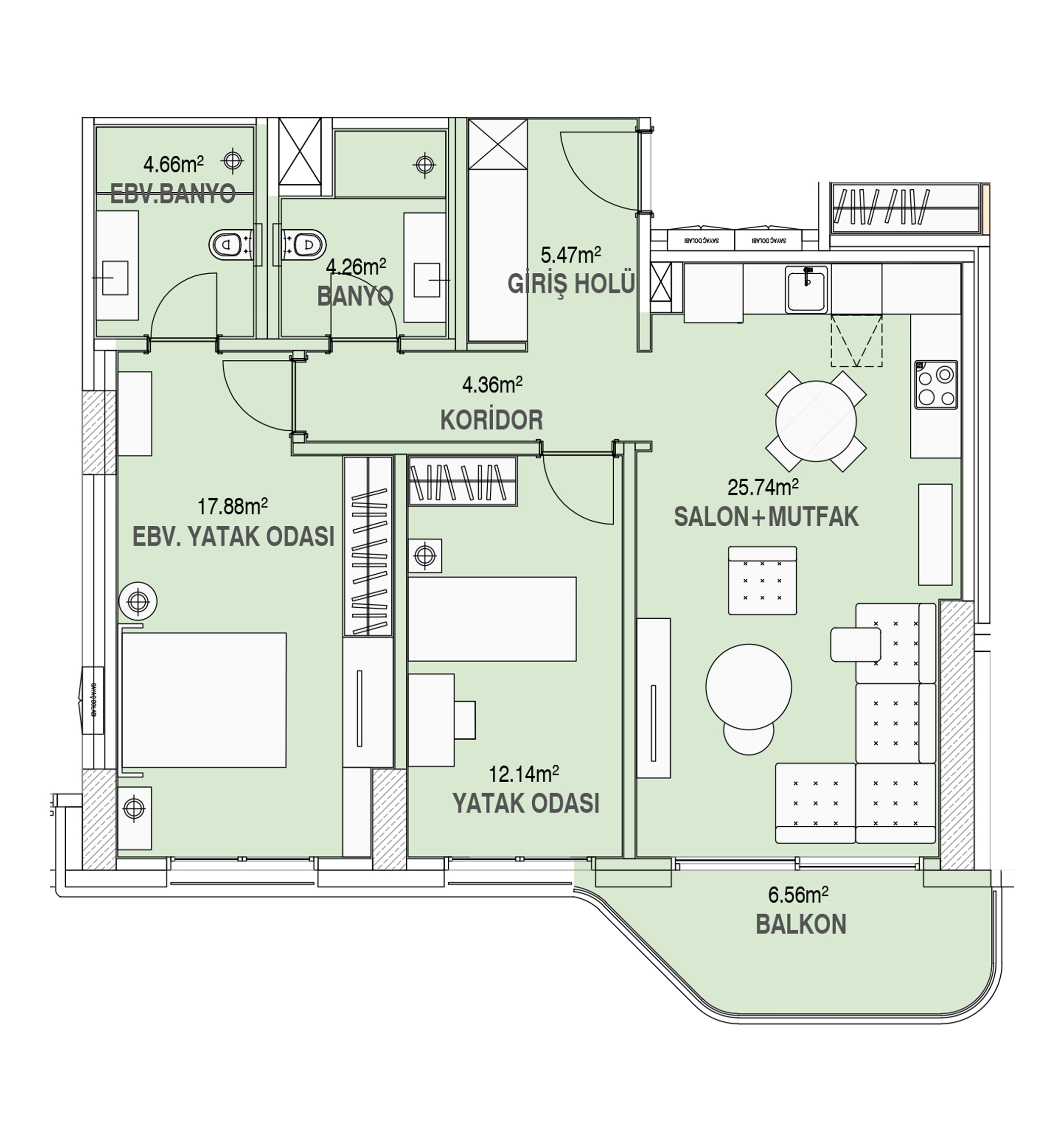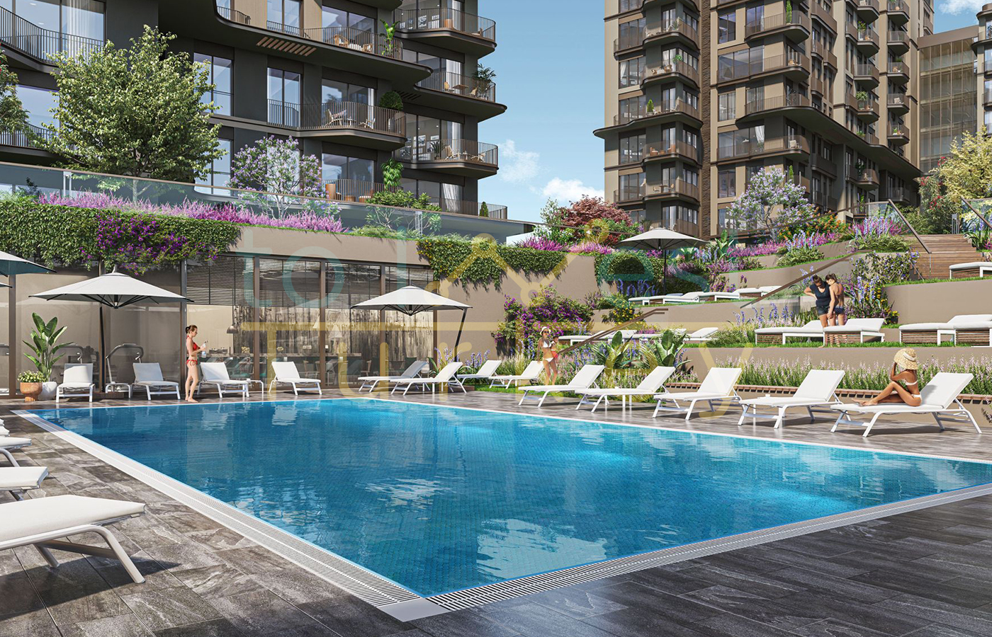 • Жилая зона: 8 блоков (до 15 этажей), предлагающих 754 роскошных апартамента с планировками от 1+1 до 5+1.